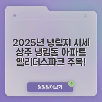 경상북도 상주시 냉림동의 냉림지엘리더스파크 아파트의 시세를 분석하기 위한 단계별 가이드입니다. 이 가이드는 2025년 10월 시세를 미리 파악하는 데 도움을 줄 것입니다.