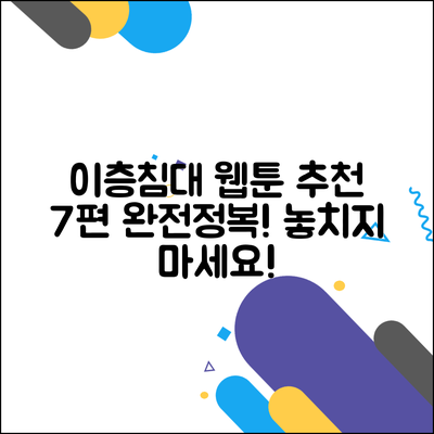 여러분의 웹툰 취향을 저격할 이층침대 웹툰 7편을 소개합니다. 이 가이드를 통해 더욱 즐거운 웹툰 감상을 시작해보세요!