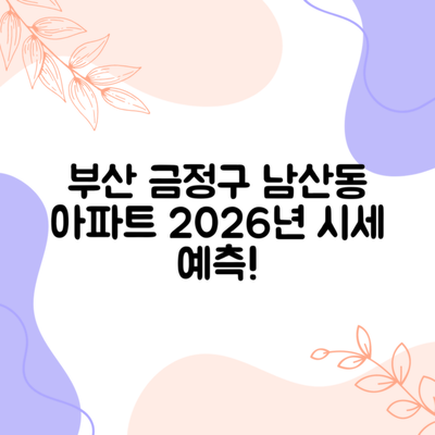 부산시 금정구 남산동 남산천일로얄맨션 아파트의 2026년 시세 전망은 복잡한 요인에 의해 결정될 것으로 보입니다. 시장의 흐름과 지역 개발 상황을 기반으로 여러 가지 시나리오를 분석해보았습니다.