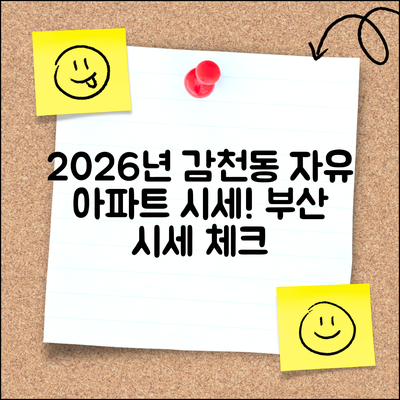 부산시 사하구 감천동 자유 아파트의 시세를 효과적으로 분석하고 투자하기 위한 전략을 따르는 것이 중요합니다. 이 가이드는 2026년 1월 시세 예측을 바탕으로 한 실용적인 투자 전략을 제공합니다.